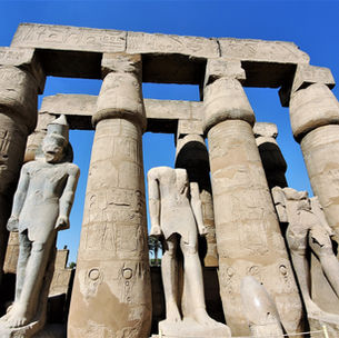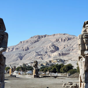 The next stop was the Temple of Deir al-Bahri (Queen Hatshepsut's Temple) which is a stunning complex located at the foot of sheer sandstone cliffs. The complex is laid out in three terraces linked by ramps down the middle. The temple itself is partly hewn out of rock with retaining walls of sandstone. The complex has some good inscriptions and reliefs but not as good as the ones in the Valleys. On the way out of the west bank are the famous giant statues known as the Colossi of Memmon. Carved out of hard sandstone from Edfu, they represent Amenophis III seated on a throne and standing guard over the entrance to a long-destroyed temple. There are also fields around this area where they dry tomatoes in the sun which makes for an interesting smell and photo.